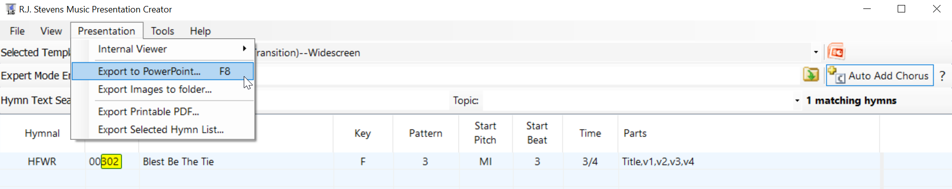 - Once you're done, press F8 or click 'Export to Powerpoint' in the 'Presentation' menu